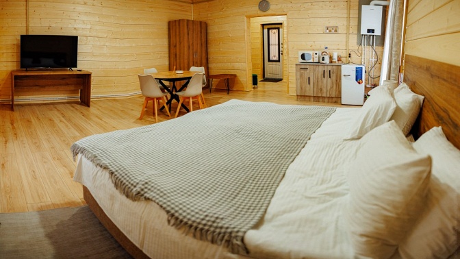 — Скидка 30% на проживание в течение 2 дней/1 ночи в номере категории дача с 3 спальнями без питания в будние дни с посещением бани (3 часа) для компании до 6 человек (19 600 руб. вместо 28 000 руб.)